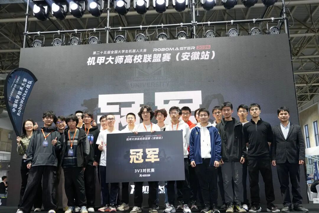 3月22日,RoboMaster 2026机甲大师高校联盟赛(安徽站)在合肥市落下帷幕。经过三天的激烈角逐,中国科大RoboWalker战队从27支高校强队中脱颖而出,以全胜战绩勇夺3V3对抗赛冠军,充分展现了科大青年学子扎实的工程素养和创新精神。